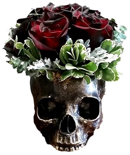 Floral Red Rose Skull Figurine Eternal Love Skull Collectible Decor 5 Inch Love Tribute Grateful Dead