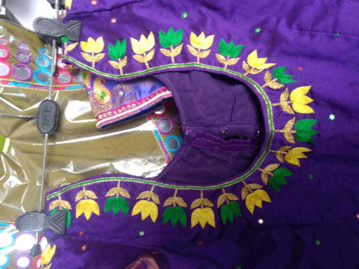 Orange Navy Blue Maggam Work Lehenga In 2020 Kids Blouse Designs