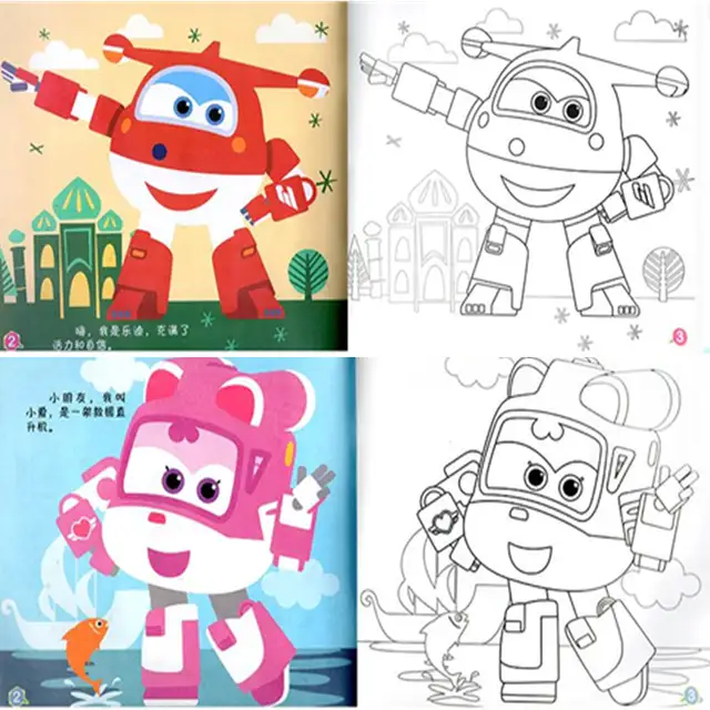 Us 3 17 14 Off 1 Pcs Picture Album Drawing Book Super Wings Color Painting Cute Robot Airplane Action Figures Simple Drawing Card Kid Gift Toy In